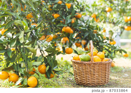 ミカンを収穫する女性