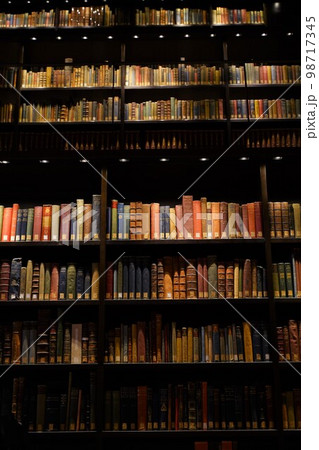 本棚、暗い、一面、大きい、本、東洋、文庫、書庫、東京、文京区、辞書、大量の本、背景、バックグラウンド
