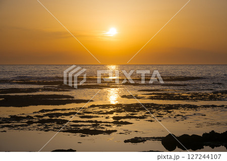 佐渡島 万畳敷(沢崎海岸)の夕日