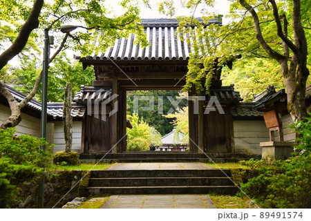 延命寺_初夏_早朝_山門_石畳_緑のもみじ