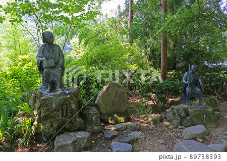 立石寺(山寺)の松尾芭蕉と河合曾良像