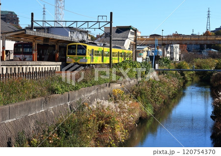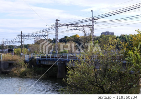 登戸 多摩川土手から見た小田急線の風景