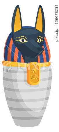 Anubis urn icon. Cartoon ancient ritual vase