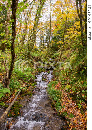 世界遺産白神山地の秋 紅葉の十二湖 湧き水