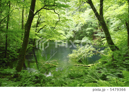 世界遺産白神山地の初夏 新緑の十二湖 沸壺の池