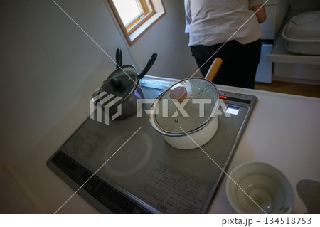 ガスコンロで調理する様子 料理中 ガスコンロ