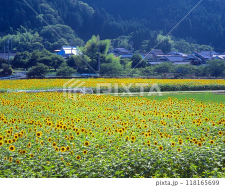 播磨の夏景色、佐用町のひまわり畑(JR姫新線、播磨徳久駅・宝蔵寺付近)