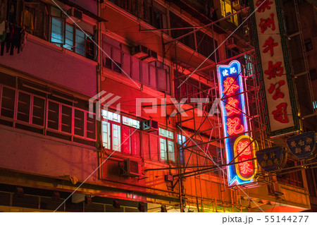 香港九龍半島旺角裏路地のネオン街 「モンコック」