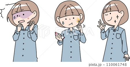 目のクマの治療ビフォーアフター 目下の隈に悩む女の人 不眠症 寝不足 人物イラスト素材
