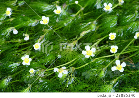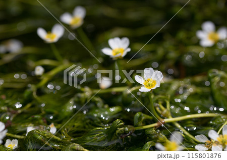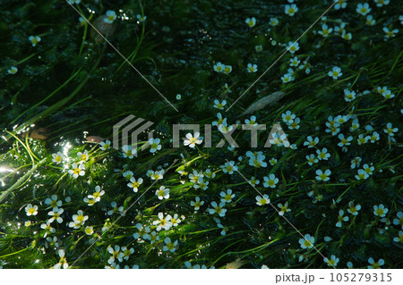 〔福井県越前市上真柄町・6月〕「治左川」の風景 治左川に群生する梅花藻 マクロ