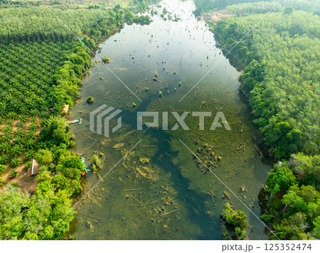 Aerial view top down Drone view over swamp or lake,Amazing nature view in the morning at Klong root lake Krabi Thailand