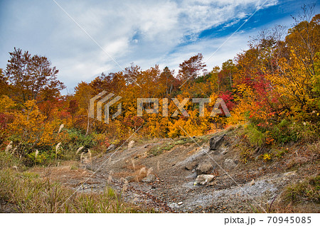 青森県八甲田 酸ヶ湯にある地獄沼沢の紅葉風景