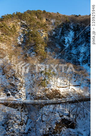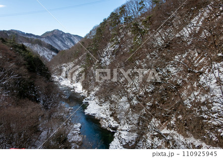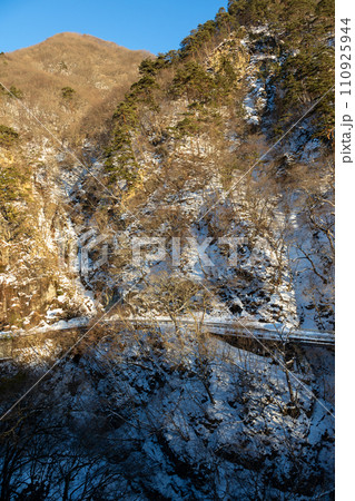 冬の老神温泉から見る片品川の岸壁