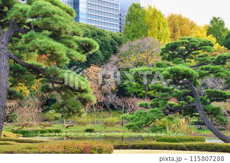 浜離宮恩賜庭園の紅葉の風景(東京都中央区)