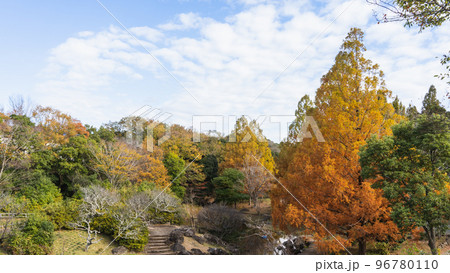 【千葉市・泉谷公園】日本の秋の風景・紅葉するメタセコイアの木