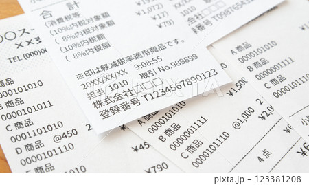 登録番号が記載されたレシートと硬貨 インボイス制度