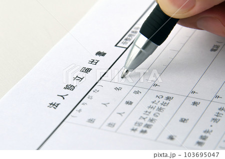 会社設立のための登記申請書とボールペン