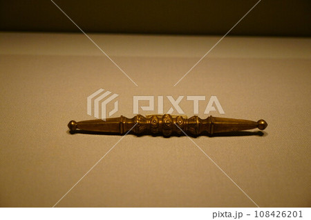 俯瞰から撮影した江戸時代の法輪(輪宝)密教法具 地鎮具
