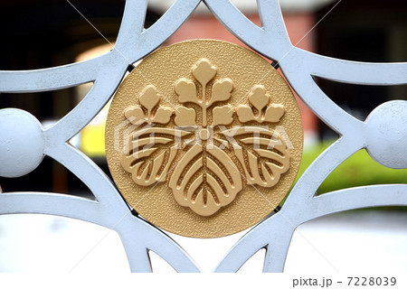 法務省旧本館赤れんが棟の門扉とそこに飾られる五三の桐紋