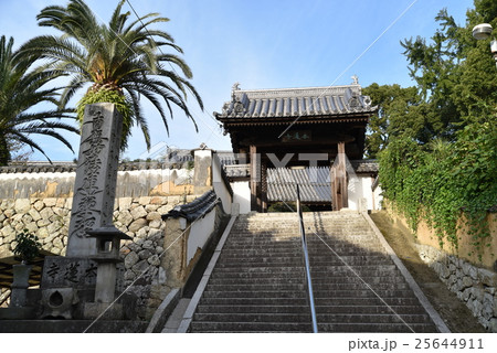 朝鮮通信使ゆかりの寺・本蓮寺の参道と山門と秋の青空 岡山県瀬戸内市