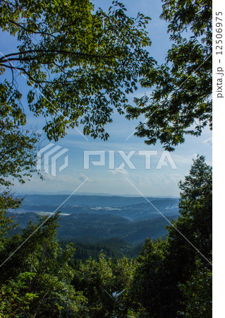 緑の切れ間に青空と山々 和泉式部身投嶽