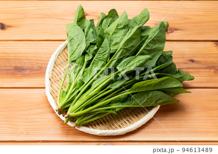 笊にのせた鮮度抜群のほうれん草
