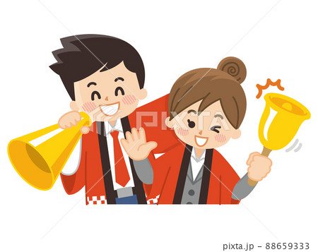 ジャンプしているハッピを着た人 男女セット