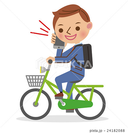 スマホを見ながら自転車を運転し電信柱にぶつかりそうになるビジネスマン