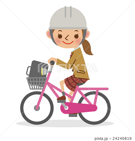 ヘッドフォンで音楽を聴きながら自転車を運転する女子生徒