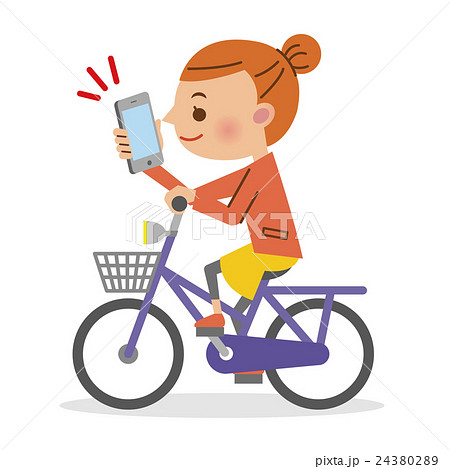 スマートフォンを見ながら自転車を運転し電信柱にぶつかりそうになる女子生徒