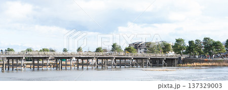 京都 法輪寺の見晴台から渡月橋と桜に包まれた嵯峨野を一望