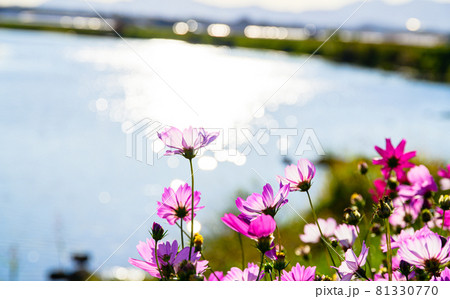 コスモスの花「秋の景色・河川敷に咲く美しい花」日本2020年秋撮影
