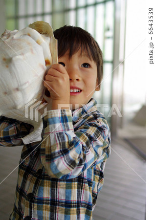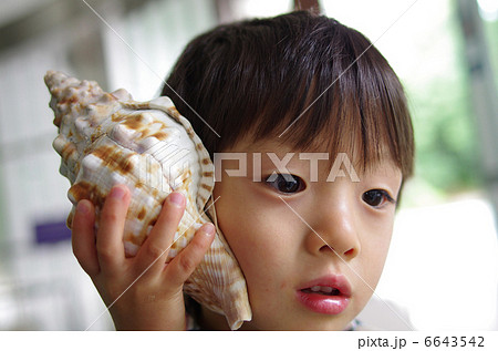 貝の音を聴く子供