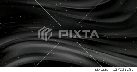 Smooth elegant black satin texture abstract background. Luxurious flowing background design. Vector Drapery Wallpaper BG