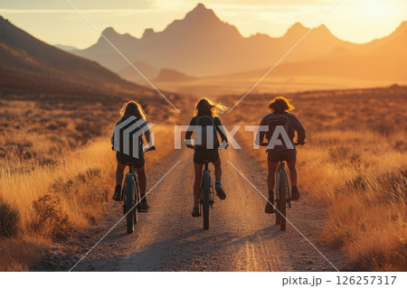 Cyclist's point of view riding through an autumn forest trail covered with fallen leaves and surrounded by golden trees