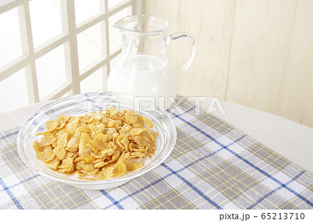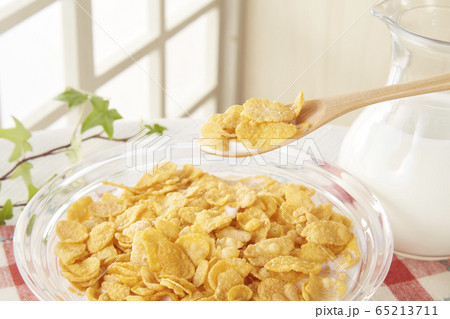 牛乳をかけた後のコーンフレーク