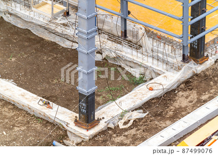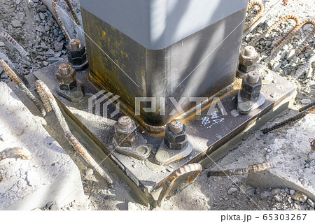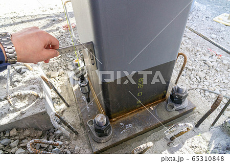 建設現場 工事現場 鉄骨工事 柱脚 グラウト注入