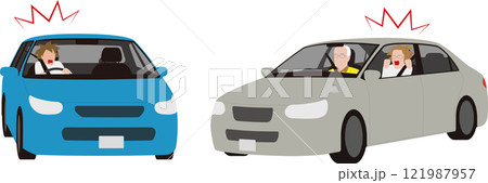 高齢男性のぼんやり運転と衝突しそうなカップルの車のイラスト