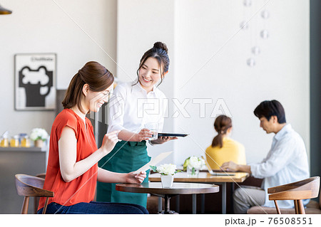 飲食店で注文する客 レストラン 女性 接客 仕事