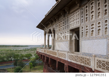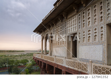インド・アグラ城「ムサンマン・ブルジュ」から望むタージ・マハル / Agra Fort, India
