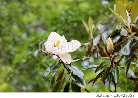 初夏に開花したタイサンボク(泰山木)の花とつぼみ