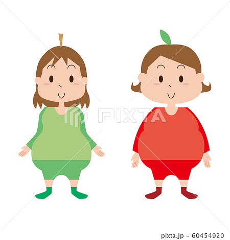 女性の体型診断イラスト04 脂肪の付き方(りんご型・洋ナシ型・バナナ型)