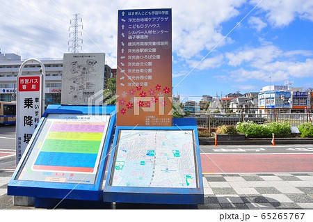 横浜市磯子区 洋光台駅前の観光案内板と町並み