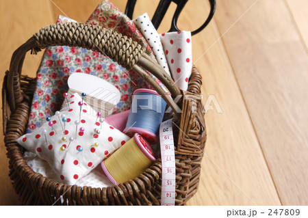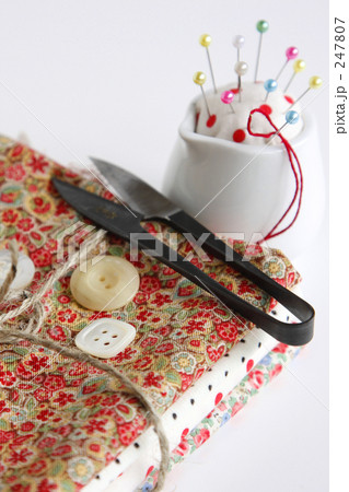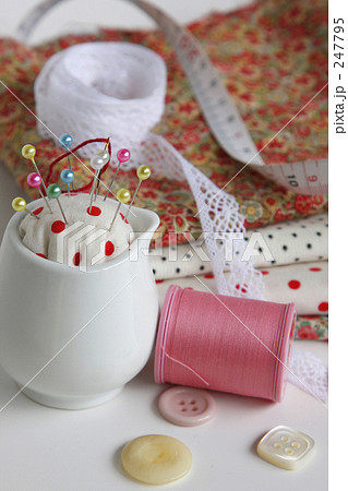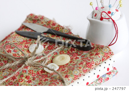 コットンの布と裁縫道具 ハンドメイドのイメージ素材