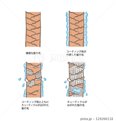 コーティング剤が付着してキューティクルがはがれてしまうイラスト