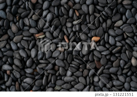 スプーンに載せた黒ごま(生ごま)のクローズアップ