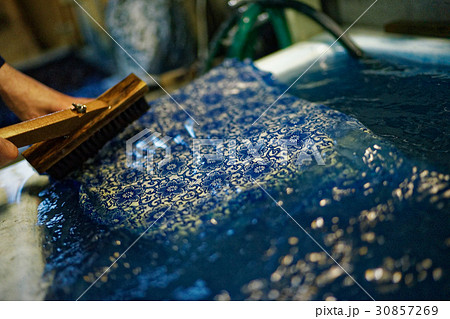 藍染 手捺染 洗い
