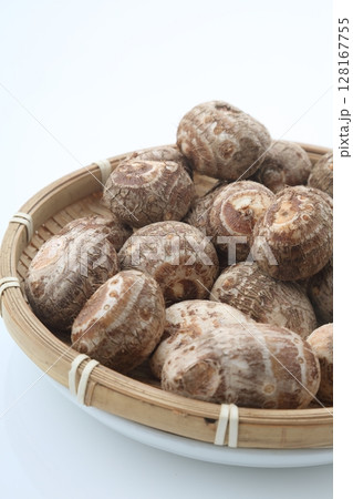 笊に盛った皮むき里芋【白背景・切り抜き】