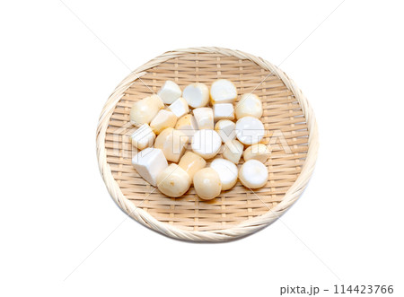 笊に盛った皮むき里芋【白背景・切り抜き】