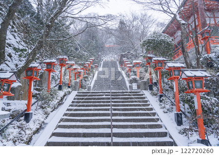冬の鞍馬寺 九十九折参道 石段と灯篭